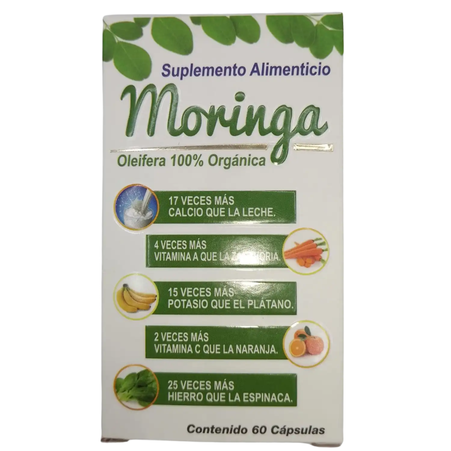 Estas cápsulas están elaboradas con polvo 100% natural de hojas de moringa, conocida por su alto contenido en vitaminas, minerales, antioxidantes y aminoácidos esenciales , ideales para fortalecer tu salud de forma integral.