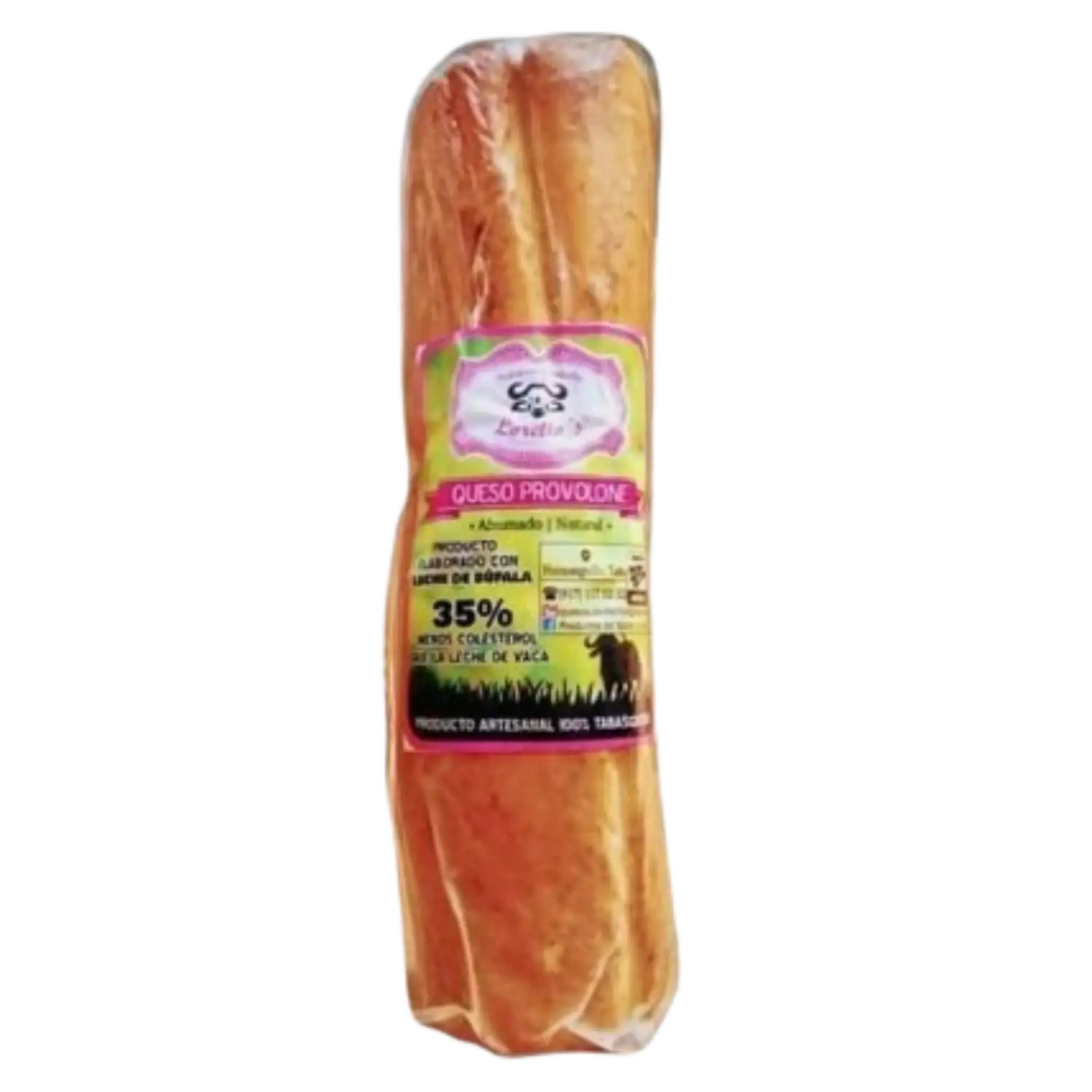 Queso provolone artesanal, ahumado y elaborado con leche de búfala. Textura firme y sabor intenso, ideal para asar o disfrutar en tablas de quesos.
